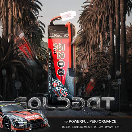 GOLDBAT 5200mAh RC Lipo batteria 7.4V 80C 2S LiPo batteria con connettore TRX per RC auto Evader BX auto camion camion Buggy elicottero aerei (2pack)