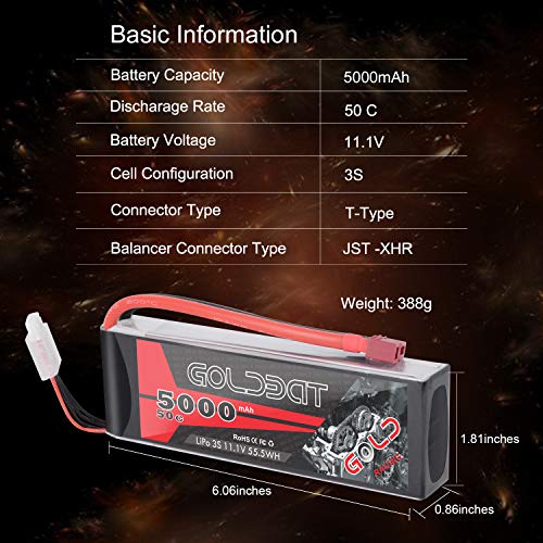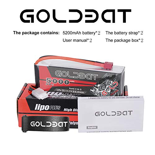 GOLDBAT Batteria Lipo Rc 3S 11.1V 50C 5000mAh RC Lipo Batteria Soft Pack con connettore Deans per RC auto, camion, barca, buggy UAV RC elicottero quadcopter (2 pezzi)