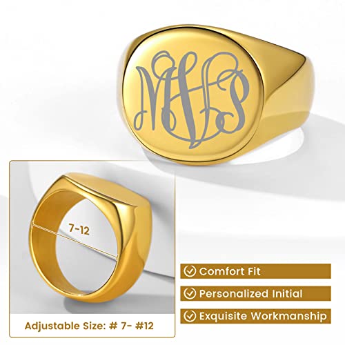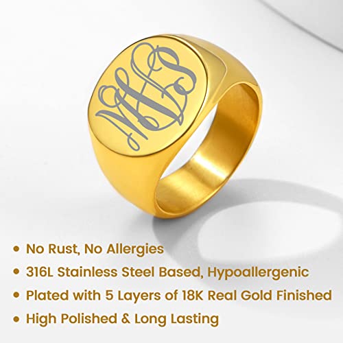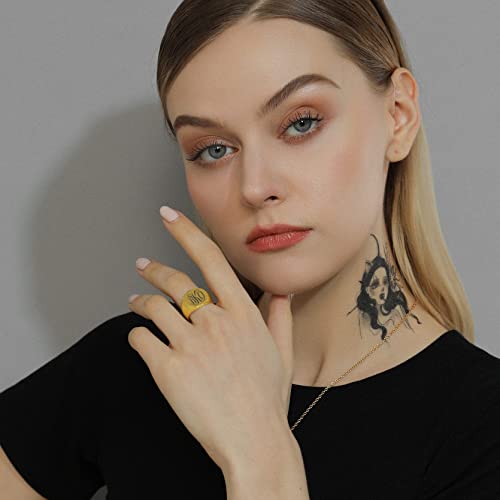 ✍ ✍ ANELLO INCISIONE DI 3 LETTERE:Un design classico ma contemporaneo, questo semplice anello con sigillo è un aggiornamento moderno di uno stile di anello che non passa mai la moda.L'anello acciaio può essere incisa con tre lettere, personalizza con la forma abbreviata di un nome, la prima lettera dei nomi degli amici o una parola preferita che usi come ispirazione.