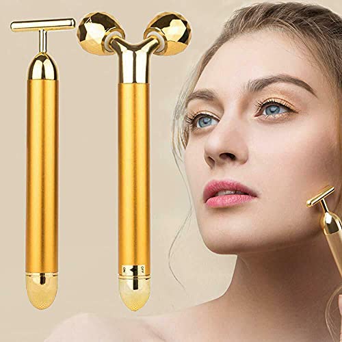 ATIN Golden 2-IN-1 Beauty Bar 24k Pulse Viso Massaggiatore,3D Roller elettrico Sonic