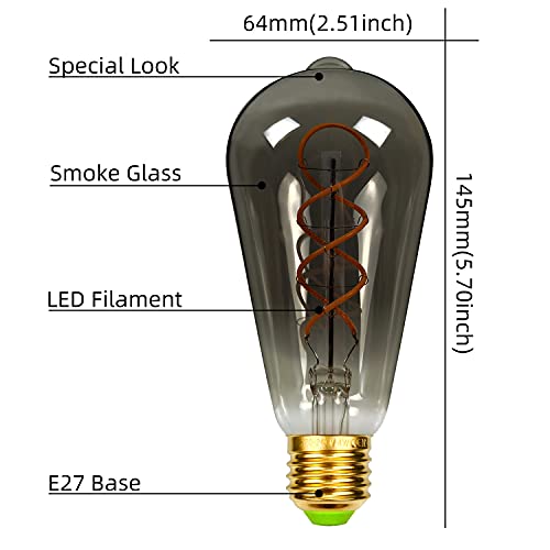 Golden Buble Lampadina Edison Stile Vintage Lampadina a Filamento LED 4W Dimmerabile 220-240V E27 Lampadina Decorativa Speciale Confezione da 2 (ST64 Spiral Smoke)