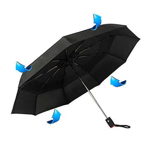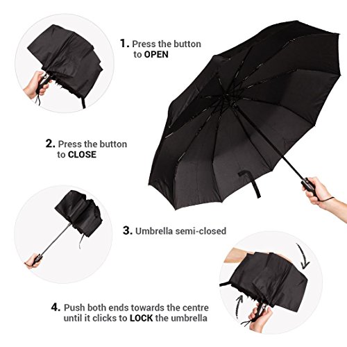 Golden Lemur Ombrello Pieghevole Antivento Portatile per Auto. Ombrello Automatico da Viaggio di Colori per Uomo e Donna. Ombrello Pioggia Rinforzate Compatto, Resistente, Leggero Colore Nero