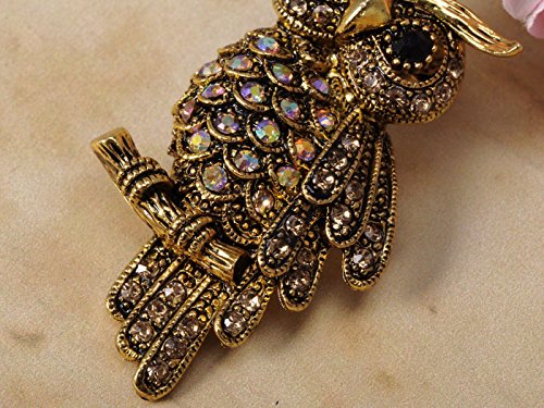 Golden Night Sky ipnotica Hooting Owl Tree Branch posizionata sopra un Costume Pin-Spilla a forma di uccello