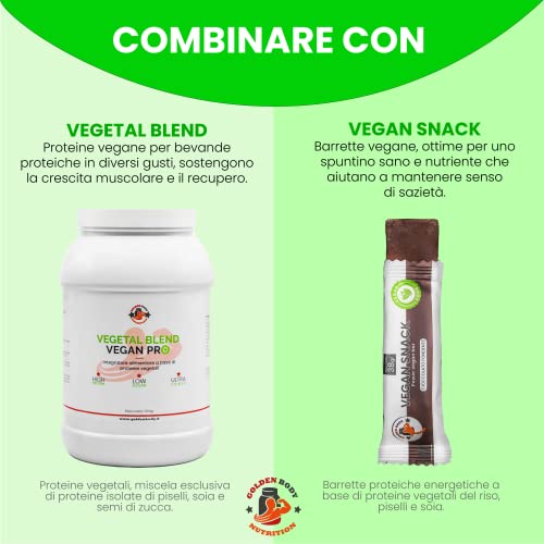 Le barrette proteiche vegane di Golden Body Nutrition sono perfette per chi segue una dieta vegana o vegetariana e vuole integrare facilmente proteine nella propria alimentazione. Senza ingredienti di origine animale, sono una scelta ideale per chi vuole integrare la propria dieta con alimenti di alta qualità.