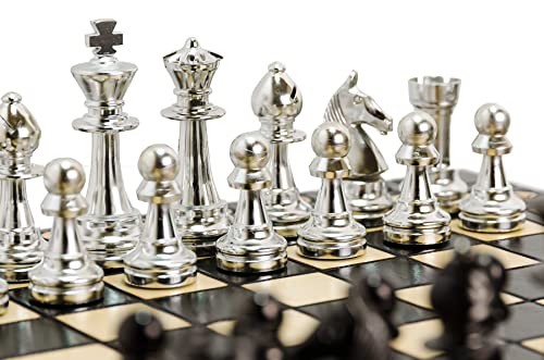 Set davvero unico con pezzi degli scacchi metallizzati (plastica ricoperta di metallo)! Bello e accattivante!