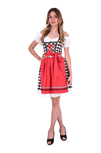 Golden Trachten Dirndl Set Abito Tradizionale 475 GT Nero Bianco a Quadretti