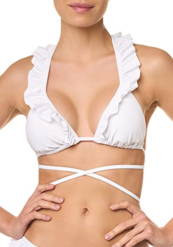 Goldenpoint Donna Triangolo Scorrevole con Rouches Costume Tinta Unita, Bianco, Taglia 1