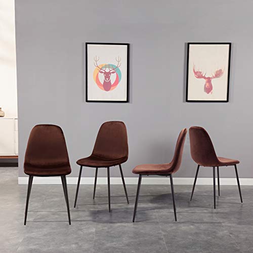 GOLDFAN Sedie da Pranzo Set 4 Sedie da Cucina Velluto Morbido Gambe in Metallo Robusto Sedile Morbido per Sala da Pranzo/Ufficio/Salotto, Marrone (Solo Sedie)