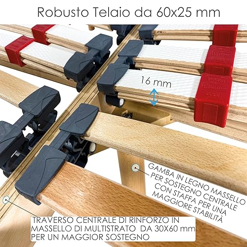 Goldflex Rete Rosa Eco Fissa 160x195 Matrimoniale a Doghe in Legno Multistrato di faggio Struttura Rinforzata Regolazione Rigidità Lombare Gambe avvitabili h. 25 cm Dispositivo Medico Detraibile
