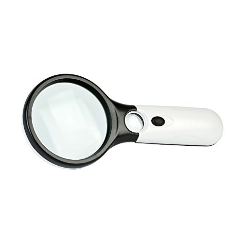 Goldiflora Optics MG 6902AB High-Quality Hand Magnifying Glass with Glass Lens 40x and 3x Magnification 2 Lens Diameters 22 mm and 75 mm with 3 LED Bulbs Includes 3x AAA Batteries + 1x Bottle Special Lens Cleaner 1x Microfibre Cloth 1x Cheque Magnifier 1x Protective Cloth Pouch
