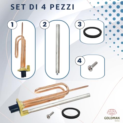 GOLDMAN SERVICE Resistenza termica elettrica flange 1500 W + anodo magnesio + guarnizione in gomma + vite fissaggio. Kit Ricambio scaldatore acqua compatibile con tutte le principali marche