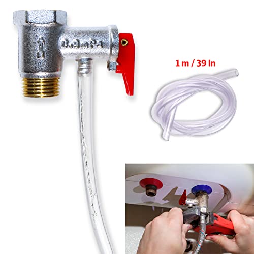 GOLDMAN SERVICE Valvola di sicurezza per thermos elettrico. Chiave per alleviare la pressione (0,9 mPa) 1/2 pollici maschio - femmina + tubo di scarico da 1 metro
