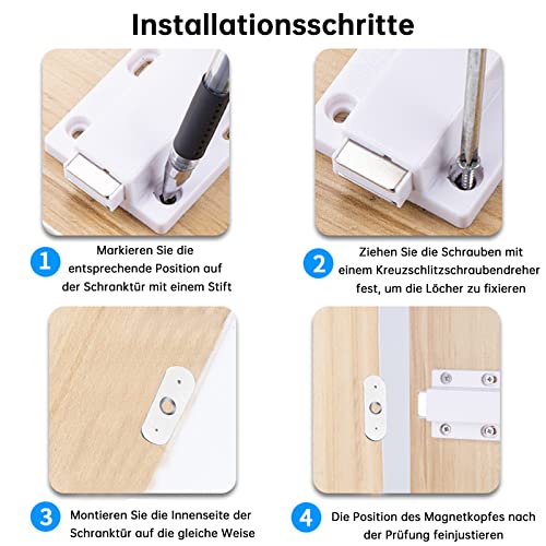 Chiudiporta magnetico: la chiusura magnetica GoldRock ha un alloggiamento in ABS elegante e attraente, combinato con materiali in acciaio inossidabile di alta qualità e magneti. Resistente alla ruggine e alla corrosione, durevole e durevole. Fondo poroso più spesso per una maggiore robustezza e durata. I magneti garantiscono un punto di chiusura sicuro, in modo che la porta sia più stabile e non sia più "galleggiante".