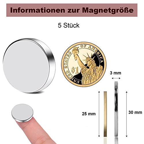 ✅【Magneti autoadesivi】GoldRock Magneti autoadesivi inclusi: riceverete 5 magneti e 5 piccoli fogli autoadesivi. Ogni magnete al neodimio misura circa 30 mm x 30 mm x 3 mm, leggero, magnetico, non occupa spazio ed è comodo da riporre. Design rotondo, ideale per lavagne magnetiche cancellabili a secco, puntine, note o pareti fotografiche, artigianato, materiali fai da te e molto altro ancora.