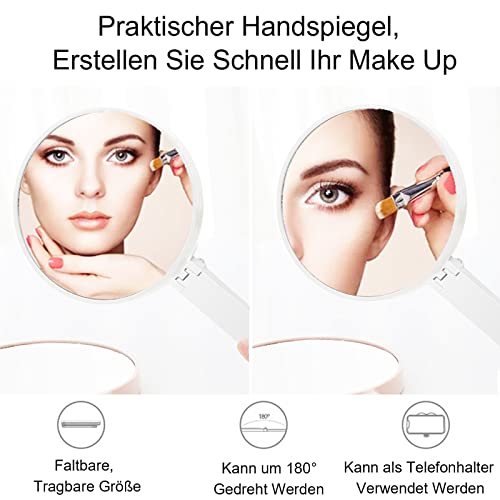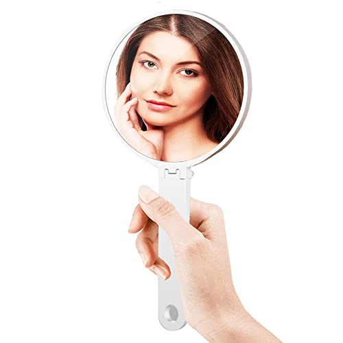 GoldRock Specchio a mano con manico, 1 specchio pieghevole, portatile, specchio da parrucchiere, specchio rotondo piccolo, per uso portatile, tavolo e viaggio, colore bianco, idea regalo