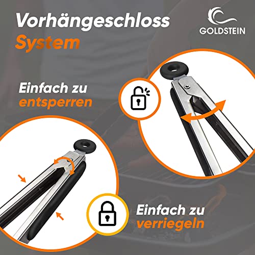 Goldstein Pinza da cucina, pinza da cucina, pinza per carne, in acciaio inox resistente al calore e silicone, lavabile in lavastoviglie, 23 cm (rosso)