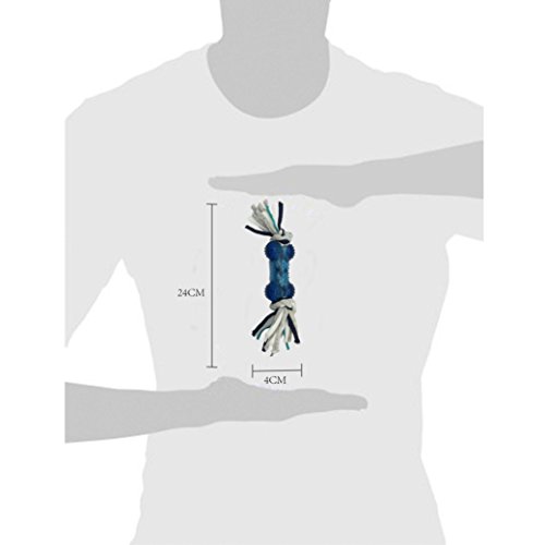 Pro Goleem Durable Textured Rubber Bone Chew Giocattolo per Cani con Colourfor Cotone Intrecciato Nodo (Blu)