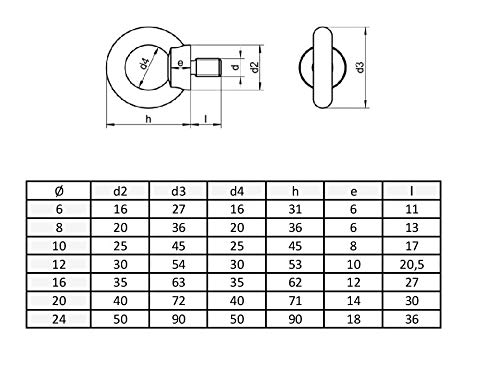 50x Golfare ad Occhio Circolare Golfare Maschio DIN 580 Acciaio Inox M6