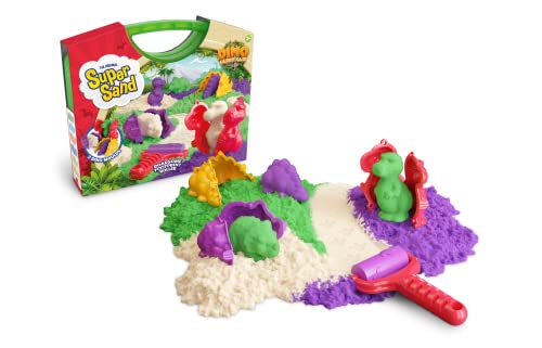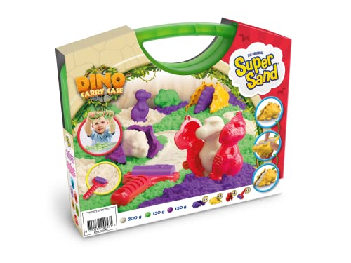 Goliath, Super Sand, valigetta con sabbia colorata e dinosauro per creare sculture, per bambini dai tre anni in su, la sabbia non secca e non sporca