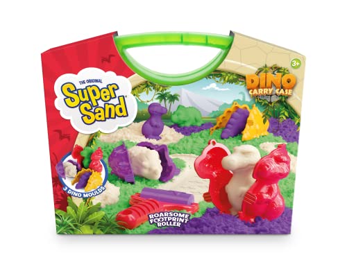 Super Sand è unica, una valigetta piena di sorprese, per creare sculture a forma di dinosauro e non solo. All'interno ci sono tanti oggetti per dare spazio alla creatività
