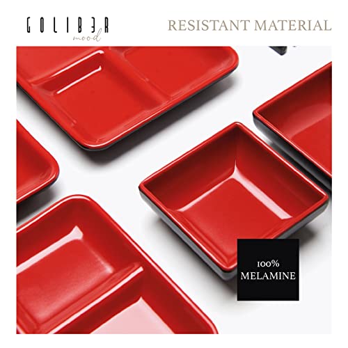 GOLIBER Servizio Piatti Giapponese per Sushi in Melamina(16 pcs) - Include 4 Piatti di Sushi, 4 Ciotoline Per Salse, 4 Set Bacchette Giapponesi e 4 Porta Bacchette - Servizio Giapponese (Rosso)