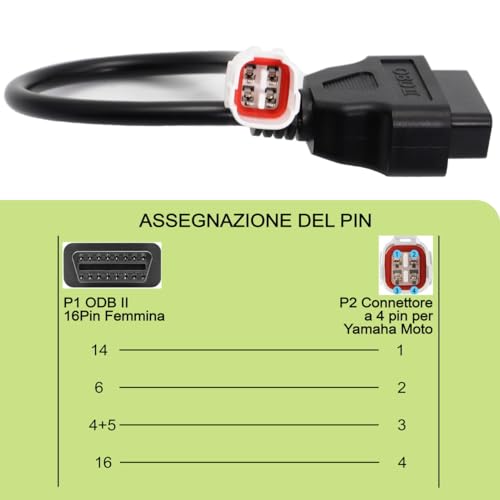 Con questo cavo adattatore da 4 pin a OBD2 è possibile collegare la tua moto Yama ha a un'interfaccia diagnostica OBD2 compatibile con CANbus o scanner ELM327.