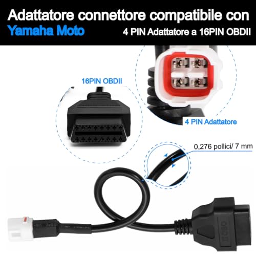 Goliton Cavo diagnostico OBD2 OBDII adattatore da 4 pin a 16 pin, compatibile con moto Yamaha Ha