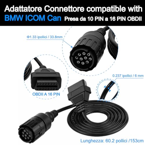 Cavo diagnostico OBD2 da 10 pin a 16 pin compatibile con BMW ICOM in grado di eseguire tutte le funzioni, tra cui diagnosi e programma.