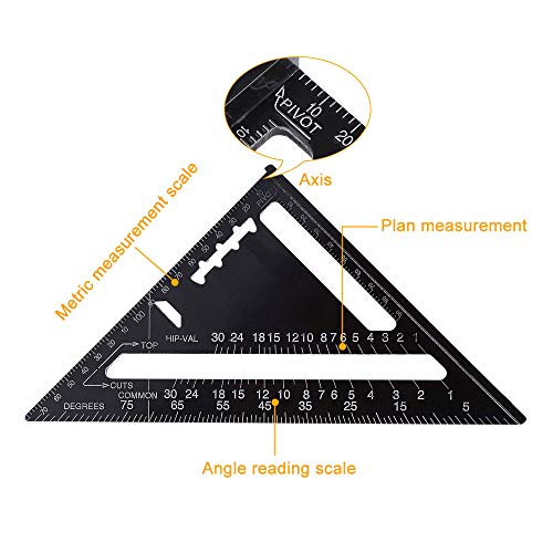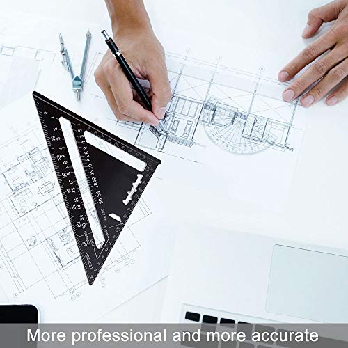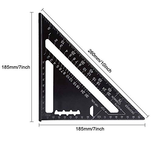 GOLRISEN Righello Triangolo in Lega di Alluminio da 7 Pollici Squadra da Falegname Strumenti per Misurazione Triangolo Righello Carpentiere Misura Triangolare per Falegname Conciatetti Ingegnere, Nero