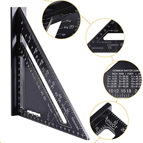 ✪ 【 Materiale di buona qualità 】-- Il nostro squadrette da carpentieri è realizzato in materiale robusto e resistente, ad alta durezza, costruito in fusione di alluminio e verniciato e laccato, ottima finitura, con finitura nera opaca per prevenire l'abbagliamento, non arrugginisce, resistente alla corrosione e durevole, non È facile da rompere. Bordo piatto da posizionare in modo sicuro.