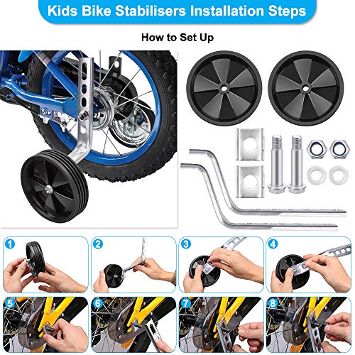 【Materiali robusti e durevoli】Le ruote per l'allenamento della bicicletta sono realizzate in gomma di alta qualità con bracci di supporto in acciaio, robuste e resistenti, non facili da danneggiare. Ottimo per stabilità e sicurezza, può aiutare i bambini a trovare rapidamente l'equilibrio ed evitare di cadere.