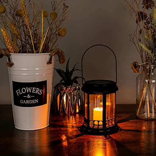 GolWof Lanterne Solari 4 Pezzi Lampada Solare Giardino Esterno Impermeabile Candela Tremolante Gialla Calda Energia Solare Lampada Decorazione per Cortile e Prato (Nero)