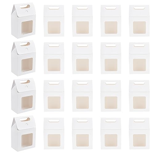 GOMAKERER 28pz Sacchetti Regalo In Carta Da, Sacchetti di Carta Bianca con Finestra Trasparente Bouquet di Fiori Borse con Manici Sacchetti Riutilizzabili per La Matrimonio Anniversario