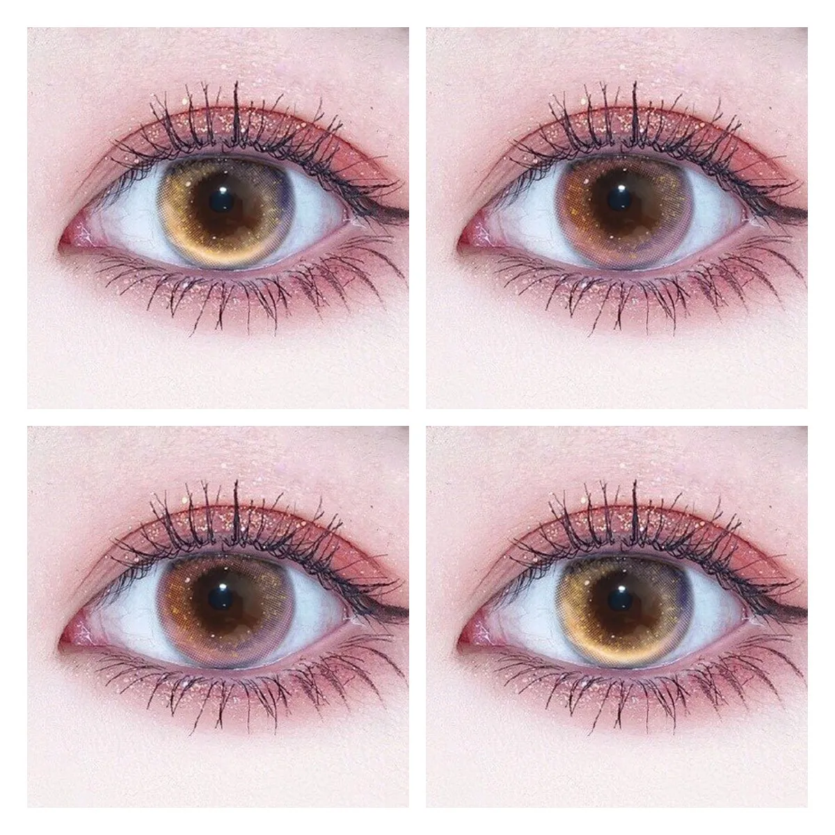GoMaxiyGirl 1 Pair Color Contact Lenses Gold Powder Gradient Blue Brown Annually Cosmetic for Eyes Myopia Grade -8.00