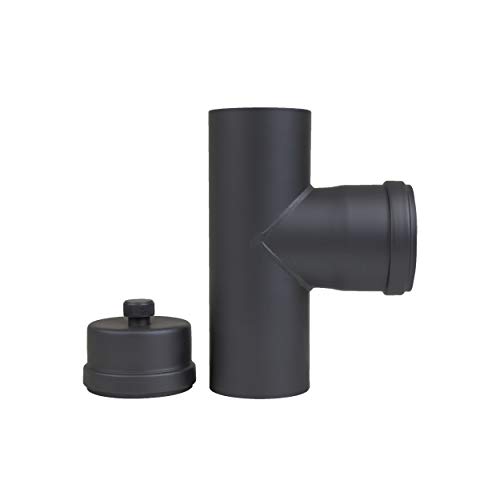 Tubo a gomito per canna fumaria a pellet, diametro 80 mm, colore grigio e nero (pezzo a T con capsula, nero).