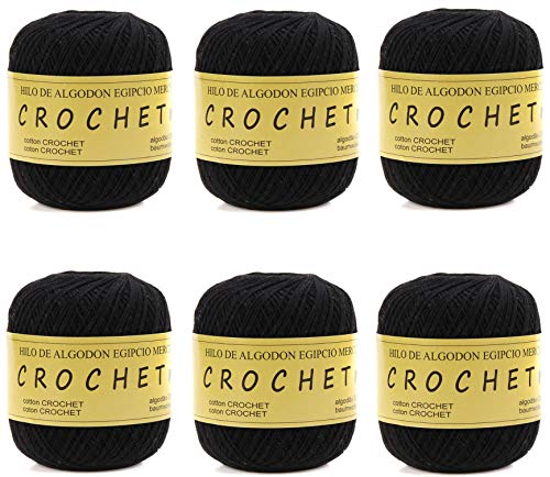 Gomitoli Cotone per Uncinetto e Maglieria Torrijo PERLE 5 XXL Zeppelin 70g, Amigurumi Filati Cotone per Uncinetto Numero 5, Gomitolo Lana Grande | 6 Gomitoli, Colore 43308-NERO