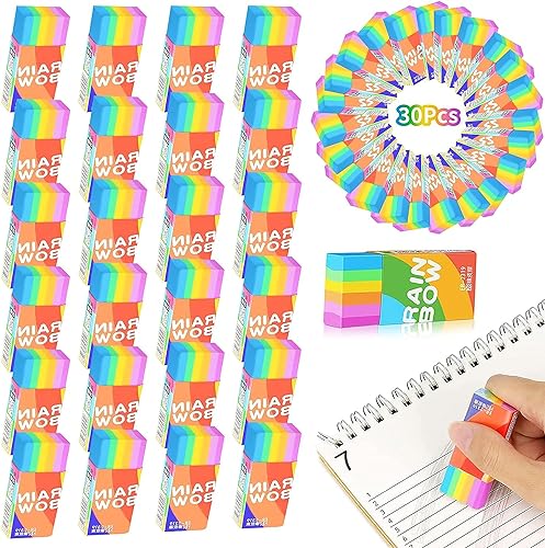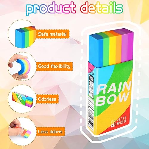 Set di gomme: riceverete un totale di 30 gomme arcobaleno da 2B per l'uso quotidiano. Evita gli acquisti frequenti a causa della perdita costante. Le simpatiche gomme da cancellare piaceranno molto a tutti i bambini.