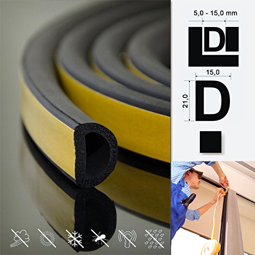 25 m in gomma D-Profil Nero 21 mm Autoadesive con finestra con guarnizione in gomma jesro guarnizione gruppo cheerio di guarnizione