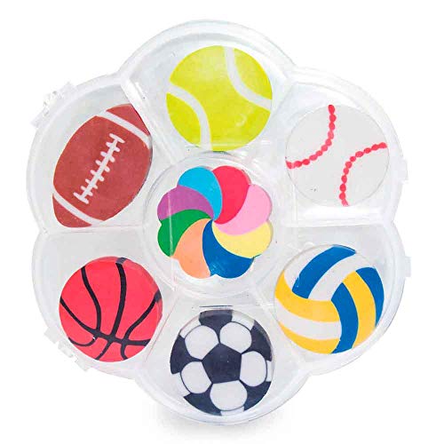 Set di 7 gomme da cancellare a forma di palloni, confezione da 10 pezzi, regalo per bambini, per compleanno, scuola e feste per bambini.