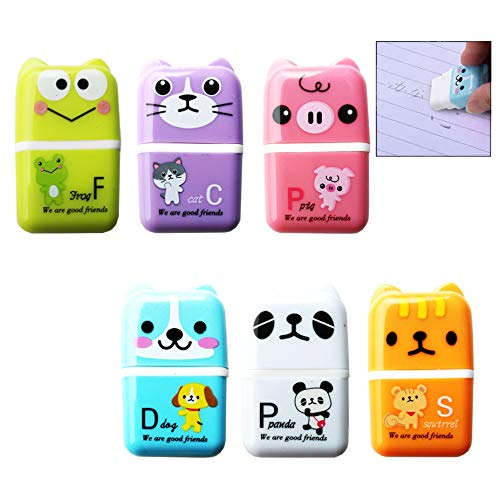 XLKJ Gomme da Cancellare,6 pezzi Gomma per Matita Carina Cartoon Roller per Bambini, Ufficio,Scuola,Regali per Studenti
