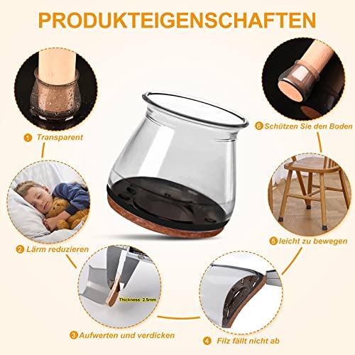 【Assorbimento del rumore】il feltro ultra spesso 2,5 mm viene incollato direttamente sul silicone organico tramite una forte colla per garantire che non cadano. Blocca il rumore da sedie mobili e graffi.