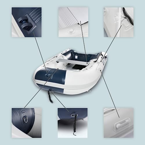 DESIGN ELEGANTE: Il design elegante e accattivante, dal blu/grigio al nero/grigio, rende questi gommoni una soluzione affidabile e pratica per gli amanti delle barche e degli sport acquatici.