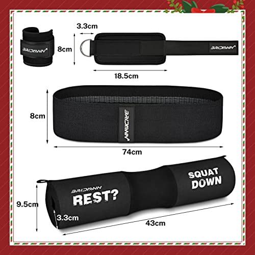 【Fantastico set di cuscinetti per bilanciere per barra del peso】 include un cuscinetto per bilanciere per uomo e donna, un paio di cinturini alla caviglia da palestra che si adattano a qualsiasi dimensione delle caviglie e migliorano la forza delle gambe e il muscolo del rapitore dell'anca e la fascia elastica e antiscivolo dell'anca che migliora il sollevamento dell'anca, la gamba modellante e modellante per il corpo, adatto per P90x, Crossfit, Yoga, Pilate e altro.