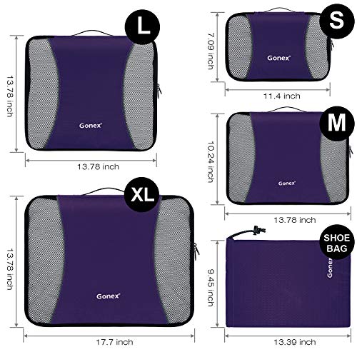 Gonex Imballaggio Cubi rip-stop nylon organizzatori di viaggi di imballaggio borse set Set di 5, viola