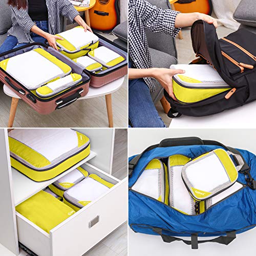 Gonex Cubi Organizzatori di Valigie Estensibili Sacchetti Organizer per Viaggi di Nylon Tessuto a rete, Borse per Bagagli Imballaggio Deposito Abbigliamento Scarpe, (Set di 3 pezzi, Giallo)