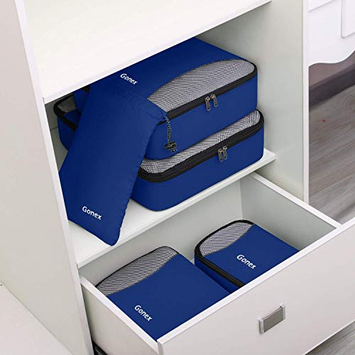 Gonex Set di 9 pezzi Cubi Organizzatori di Valigie Sacchetti Organizer a cubo dei Bagagli Borse di stoccaggio per viaggio Misura piccola media grande (Blu Scuro)