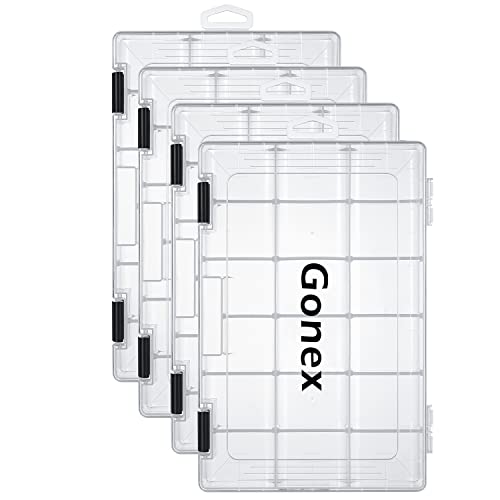 Gonex Scatole per Esche da Pesca 4 Pacchi, Scatole per Attrezzatura da Pesca Vassoio in Plastica Trasparente Organizer per la Pesca con 18 Griglie Trasparenti