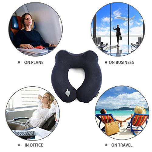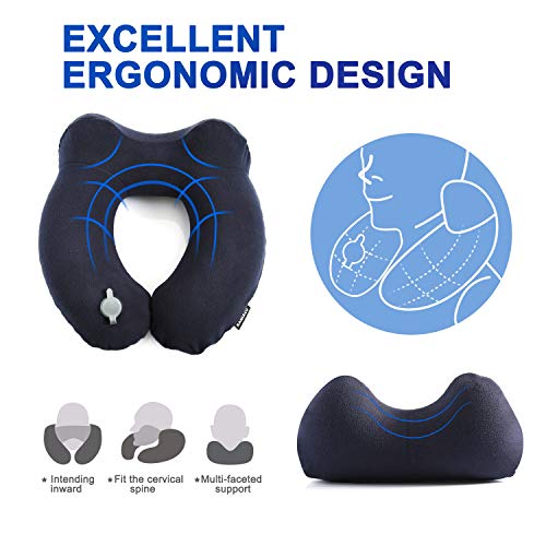 Gonfiabile Cervicale Cuscino Viaggio Aereo-Raniaco Cuscino da Viaggio Cuscini Viaggio Sonno Neck Support Poggiatesta Cuscino Bus Treno e Uso Casa con Mascherina per Dormire, Tappi per Orecchie Blu