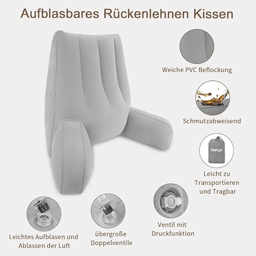Gonfiabile Cuscino di Lettura, iNeego Schienale Cuscino Comodo Cuscino da Lettura Biblioteca Lettura Cuscino di Supporto Portatile Lettura Cuscini per Letto da Studio Sala da Gioco e Guardare (Grigio)