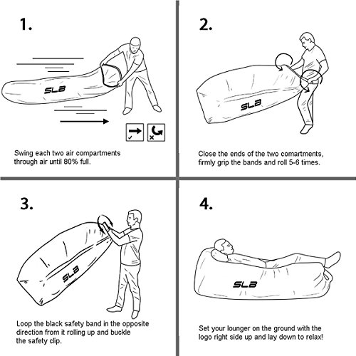 facile gonfiaggio design: siete stanchi di correre in giro come una Silly in modo da gonfiare il lettino? È il momento di cambiare. Solo 2 cucchiai di aria allora Air sedia può essere riempito in pochi secondi, senza bisogno di pompe. Passo avanti, Swing straightly per disegnare in aria fino a 80% pieno. Arrotolare il sigillo E Fibbia it up. nailed it. Non c' è bisogno di supporto in venti per riempirlo. Super facile da gonfiare e sgonfiare.